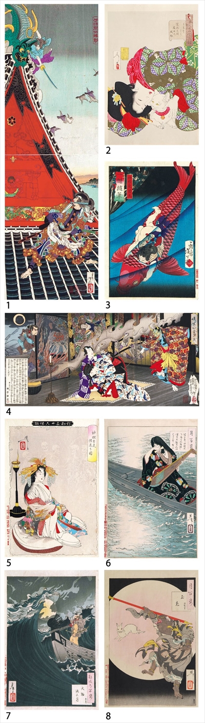 6.「月百姿 はかなしや波の下にも入ぬへし つきの都の人や見るとて 有子」明治19(1886)年